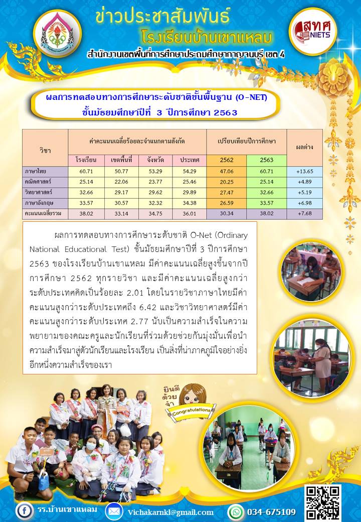 ผลการทดสอบทางการศึกษาระดับชาติขั้นพื้นฐาน มัธยมศึกษาปีที่ 3
